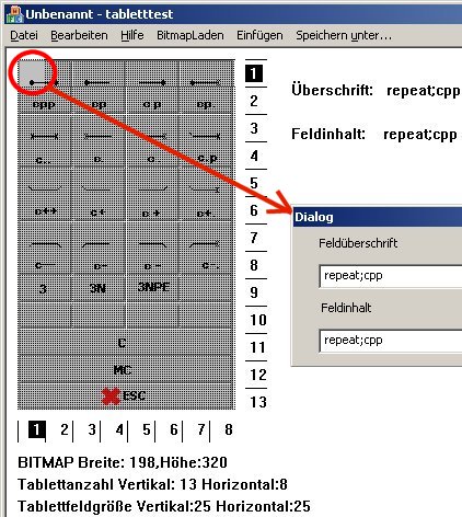 Mit dem Tablett-Editor von Steffen Eisenbrandt lassen sich eine Tablett-Bitmap und die Tablett-Datei gleichzeitig laden. Die Tablett-Datei kann leicht durch anklicken der einzelnen Tablett-Felder